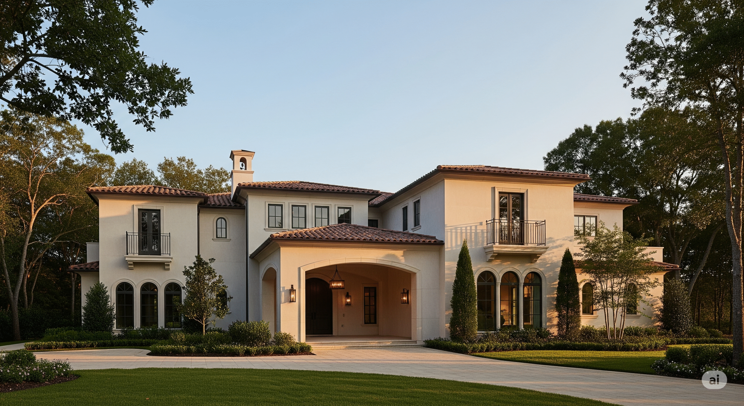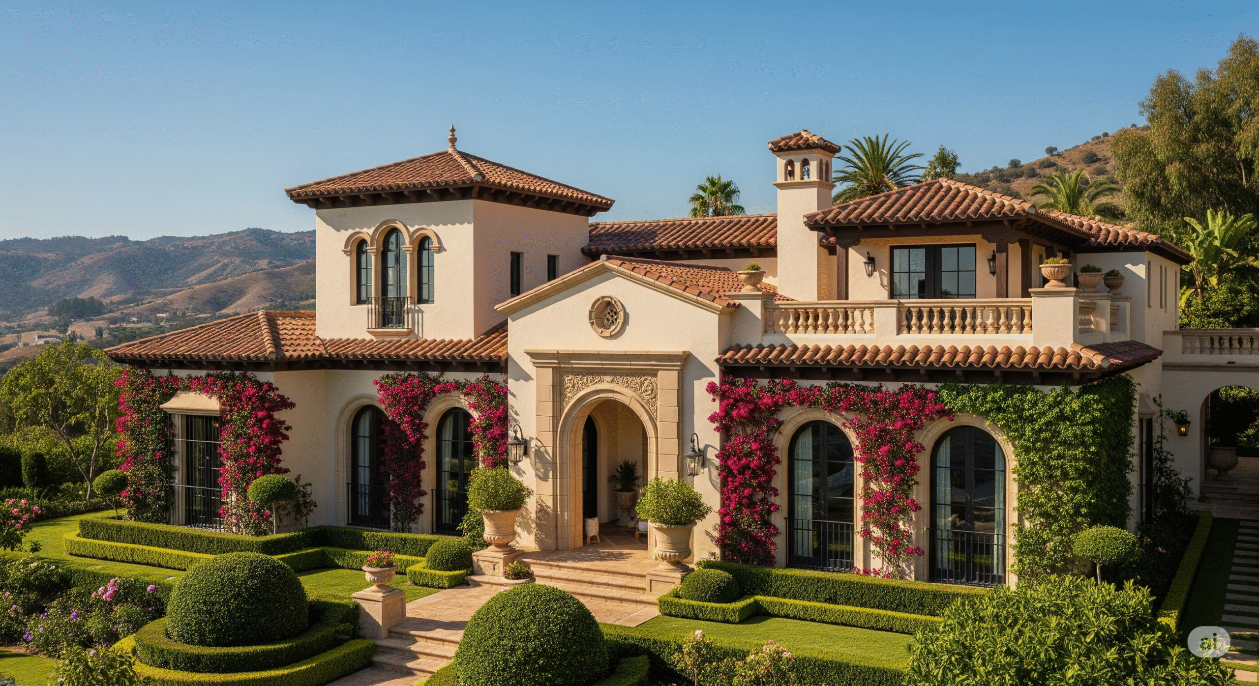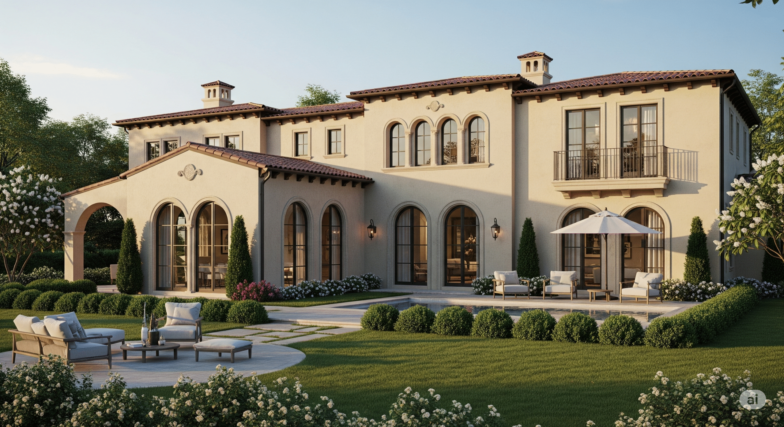 Sıcak renkler, kiremit çatılar, avlular ve bahçelerle karakterizedir.