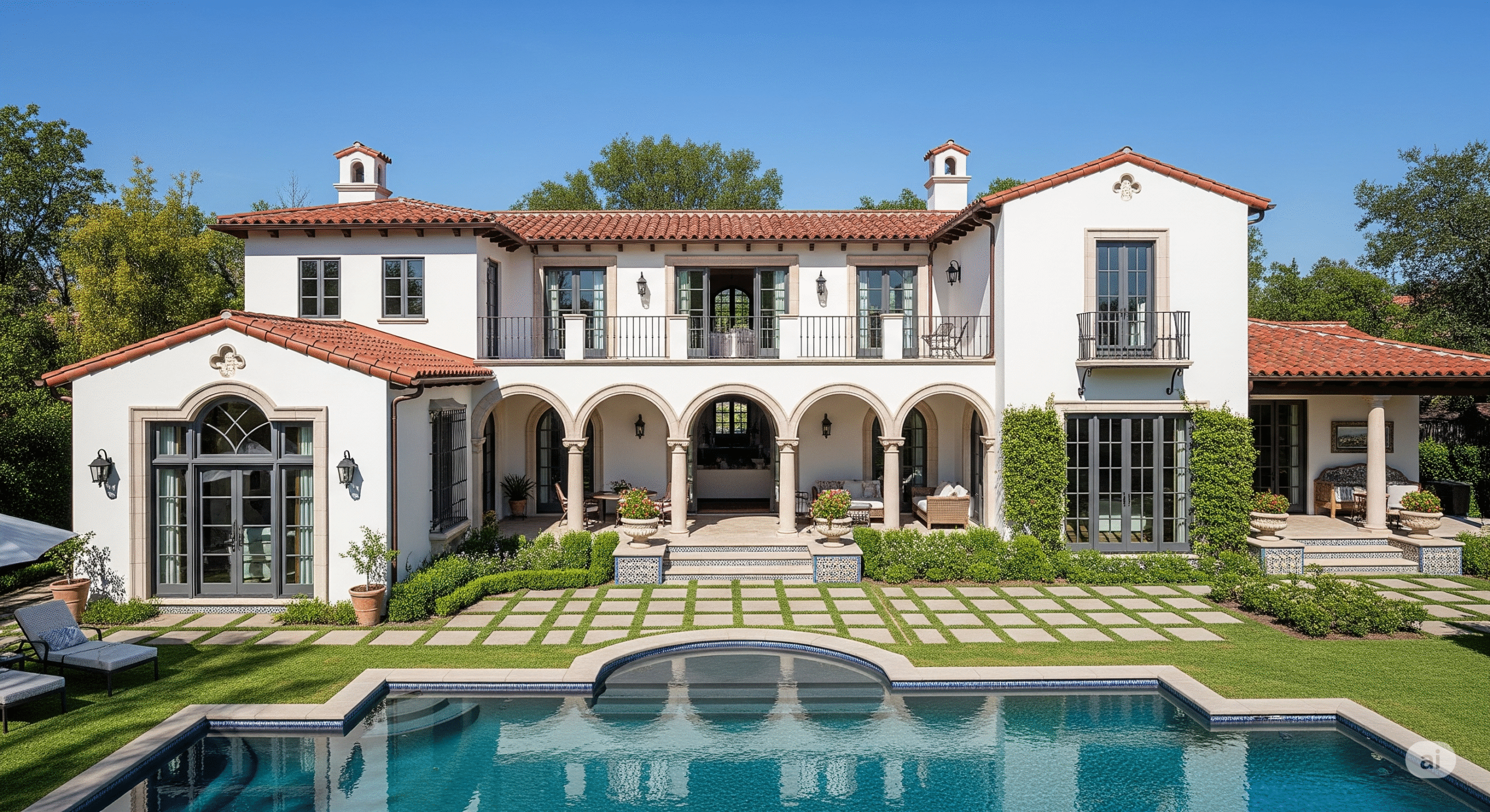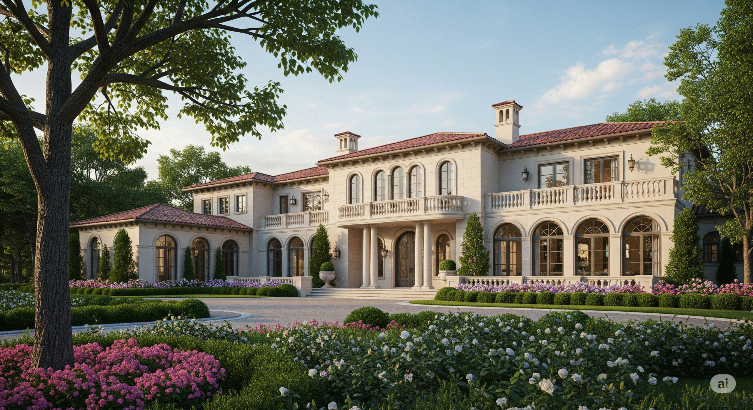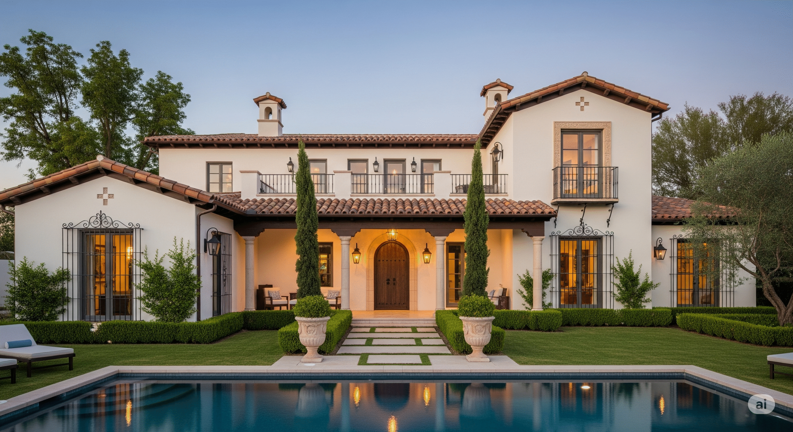 Sıcak renkler, kiremit çatılar, avlular ve bahçelerle karakterizedir.